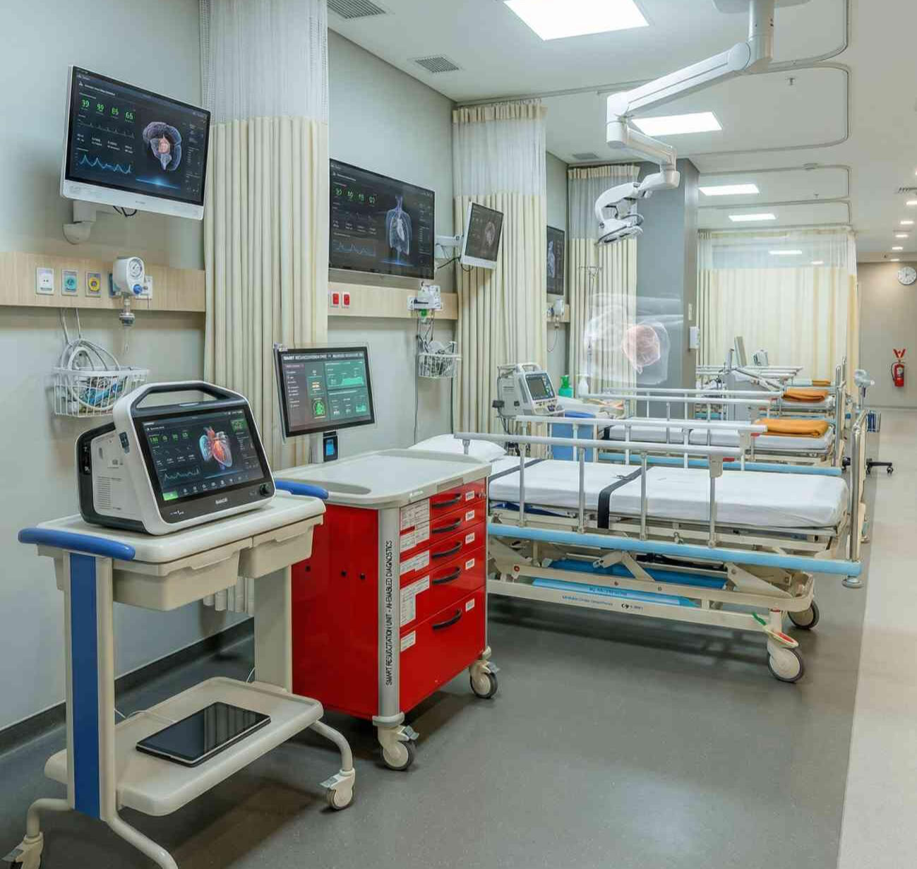 Ruang Operasi Terintegrasi (Neurological Hybrid Operating Theater). Ruang operasi hybrid yang menggabungkan meja bedah modern dan sistem pemindai pembuluh darah (Cathlab) dalam satu ruangan, dokter dapat memantau aliran darah secara langsung selama operasi, sehingga tindakan menjadi lebih akurat waktu lebih efisien