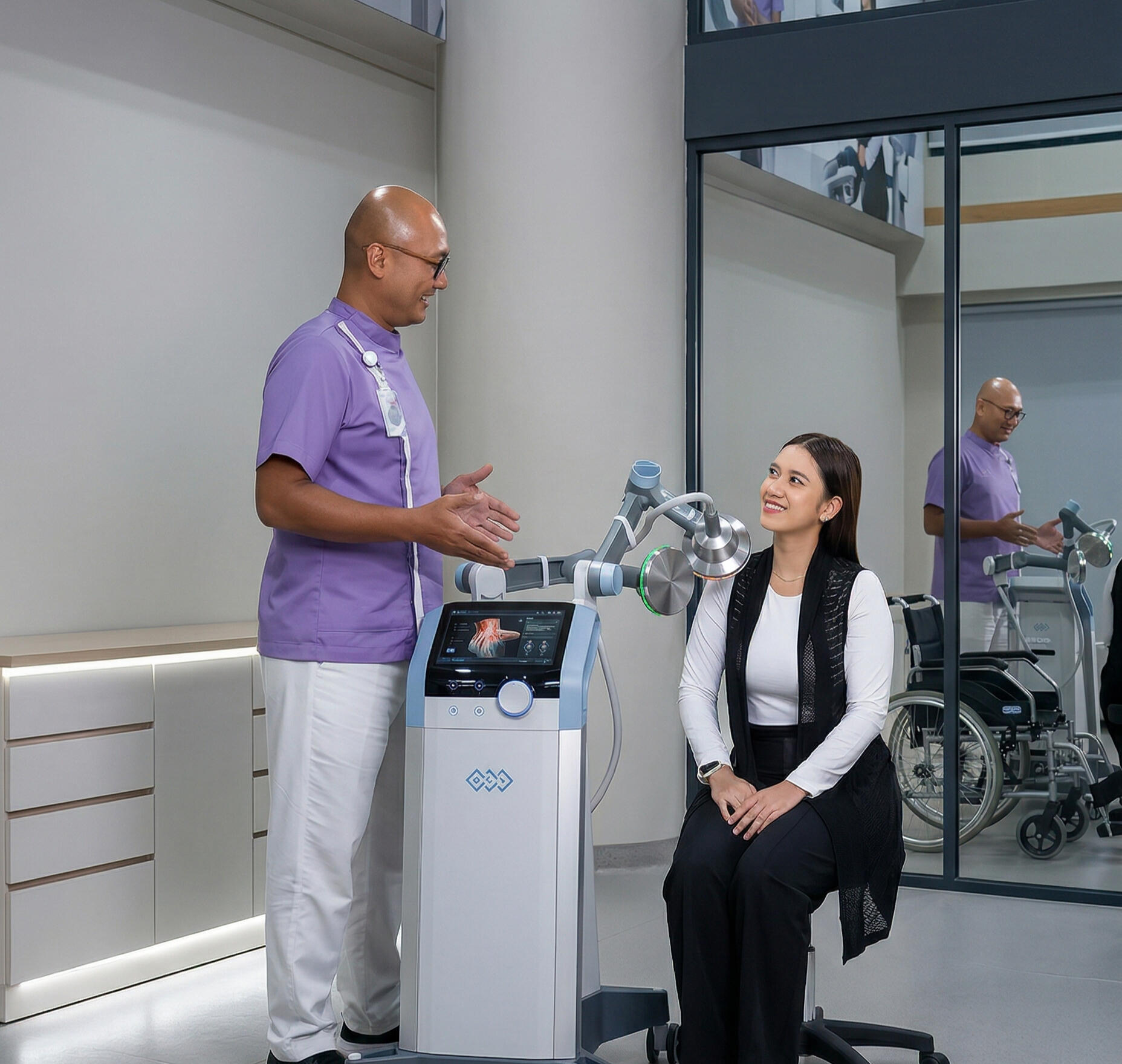 Pemulihan Saraf & Motorik (Fasilitas Neurorestorasi & Rehabilitasi Terpadu). Ditangani oleh dokter subspesialis rehabilitasi medik, fasilitas ini menyediakan terapi fisik dan wicara dengan teknologi modern. Program pemulihan disusun secara personal untuk membantu mengembalikan fungsi tubuh dan mendukung Anda kembali mandiri dengan kualitas hidup yang lebih baik.